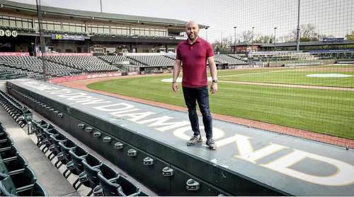 Sermon on the dugout: Life Church holding service at Dow Diamond